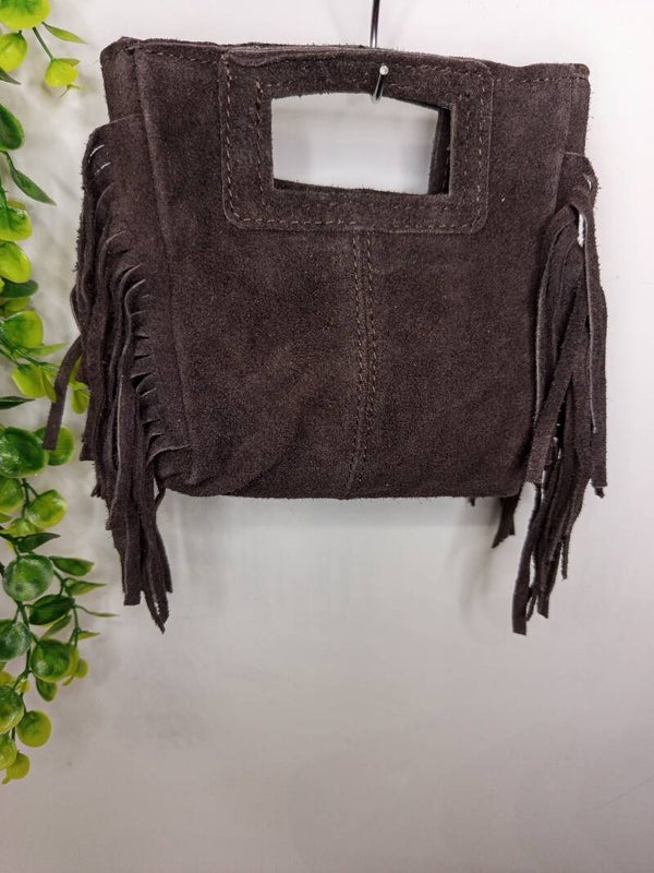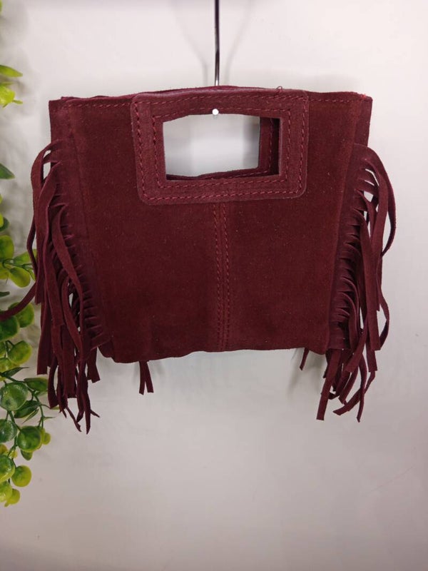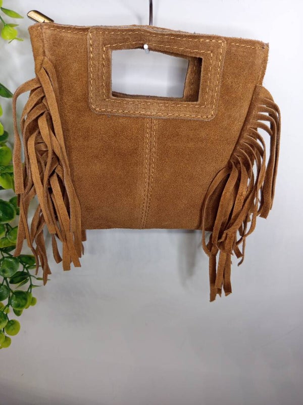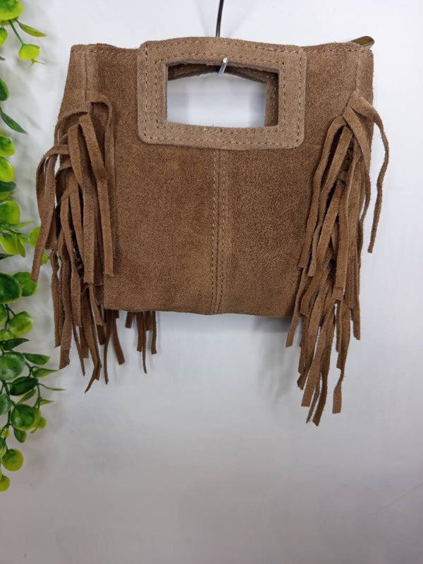 Borsa in VERA PELLE made in Italy 🇮🇹 (camoscio) con frange sui lati e tracollina interna regolabile