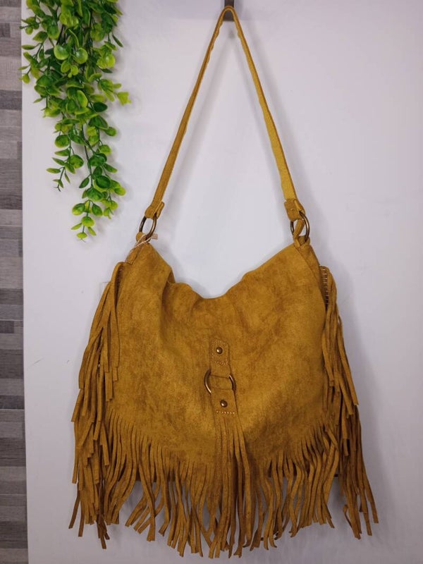 Borsa a Spalla "Boho" in Scamosciato con Frange