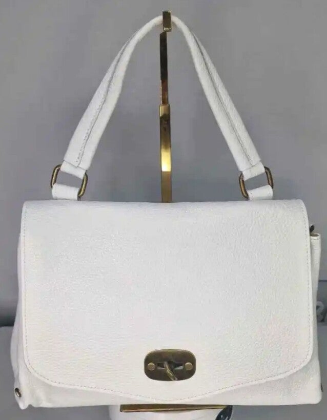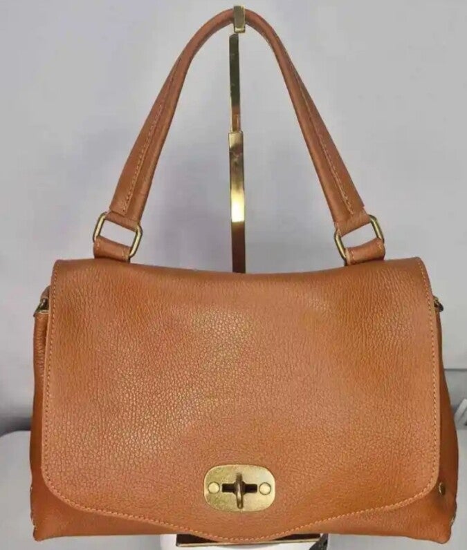 La patta con chiusura a girello impreziosita da accessori in ottone dona carattere e luminosità al design, rendendo questa borsa un accessorio sofisticato e senza tempo.